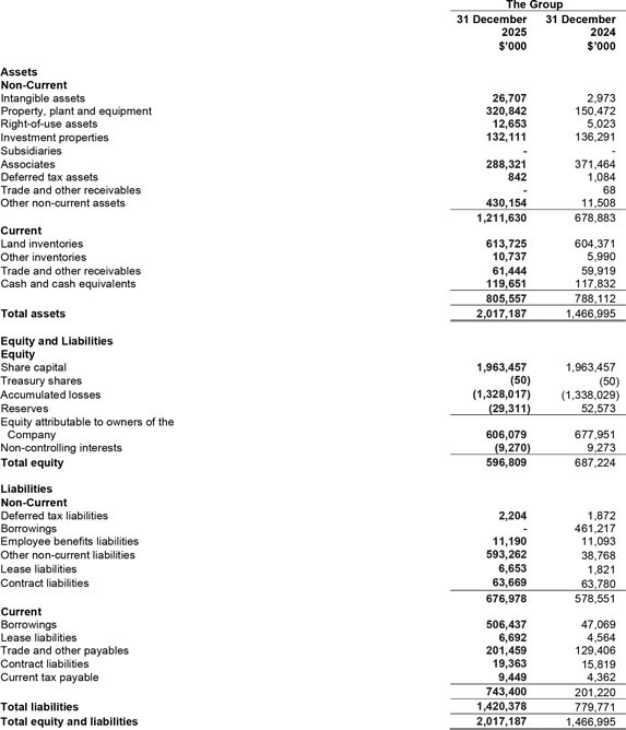 As of 31 December 2025, the Group's total assets were S$2,017.2 million, compared to S$1,467.0 million at the end of the previous year.